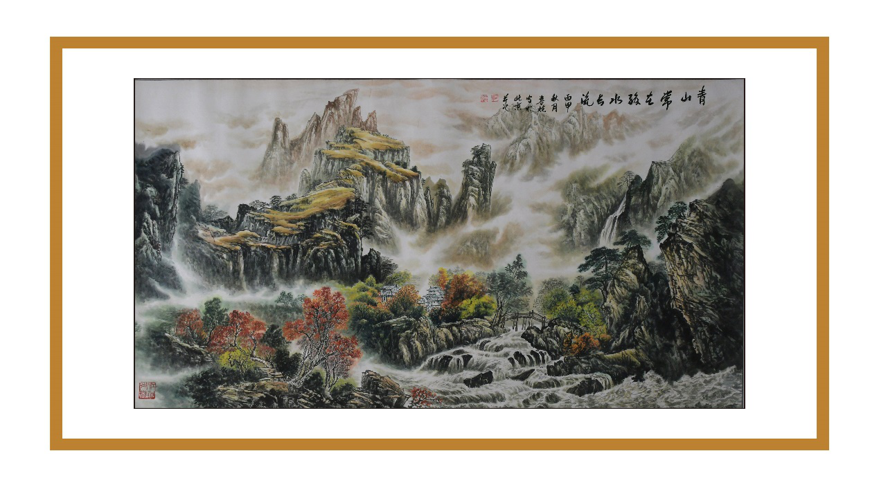 欣賞譚老的畫作,使人有一種難以言表的美感,問及原因,他說:“為了研究山水,我閱讀了大量古、今書籍,我發(fā)現(xiàn)歷朝歷代對(duì)山水國畫都相當(dāng)重視,山水被視為鎮(zhèn)宅的代名詞,一直以來在帝王家它都是以圖騰的形式存在的。”但為了能夠更好地傳承歷史文化,他鉆研國學(xué),將儒、釋、道的精髓理念及思想融入到作品中,追求創(chuàng)造的是一種“和合”之感,讓這大氣之圖騰成為真正意義上的圖騰。