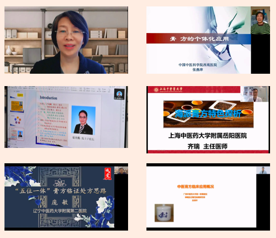 開幕式結(jié)束后,大會開展了線上學(xué)術(shù)報告和學(xué)術(shù)交流活動。董瑞會長做了《中醫(yī)膏方概論》的學(xué)術(shù)報告;北京中醫(yī)藥大學(xué)蘇慧萍教授、中國中醫(yī)科學(xué)院西苑醫(yī)院張燕萍教授、港澳臺中醫(yī)醫(yī)師聯(lián)合促進(jìn)會總會會長盧致鵬教授、上海中醫(yī)藥大學(xué)岳陽中西醫(yī)結(jié)合醫(yī)院齊瑞教授、遼寧中醫(yī)藥大學(xué)附屬第二醫(yī)院龐敏教授、廣西中醫(yī)藥大學(xué)第一附屬醫(yī)院賓博平教授六位中醫(yī)膏方專業(yè)委員會副會長分別作了《膏方防治慢阻肺的組方用藥特點(diǎn)》《膏方的個體化應(yīng)用》《脾胃系統(tǒng)(慢性胃炎疾病)的中西醫(yī)論述臨床觀察與證型研究》《海派膏方的特點(diǎn)》《膏方臨床應(yīng)用思路》《中醫(yī)膏方臨床概論》的學(xué)術(shù)報告,并與在線專家學(xué)者進(jìn)行了互動交流。中醫(yī)膏方專業(yè)委員會第二屆理事會換屆會議暨第五屆學(xué)術(shù)年會取得了圓滿成功。