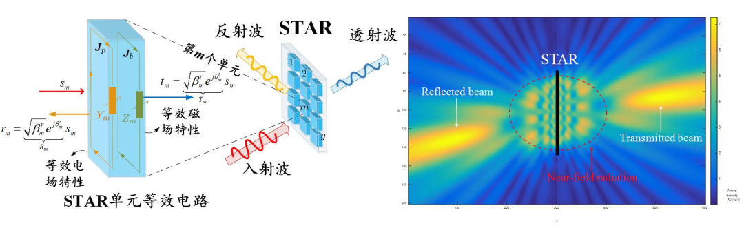 就 STARS 的控制而言,STARS 需要同時考慮每個單元折射和反射信號的控制,于是 STARS 的控制相比傳統(tǒng) RIS 更加復雜。每個 STARS 陣元需要具備獨立可調(diào)的表面電、磁阻抗,這樣,每個單元中的面電流強度(對應電阻抗)和渦旋電流強度(對應磁阻抗)才可以被改變,從而人為的控制其產(chǎn)生的反射和透射信號的幅值與相位,對無線信號的傳播環(huán)境進行“人工配置”。