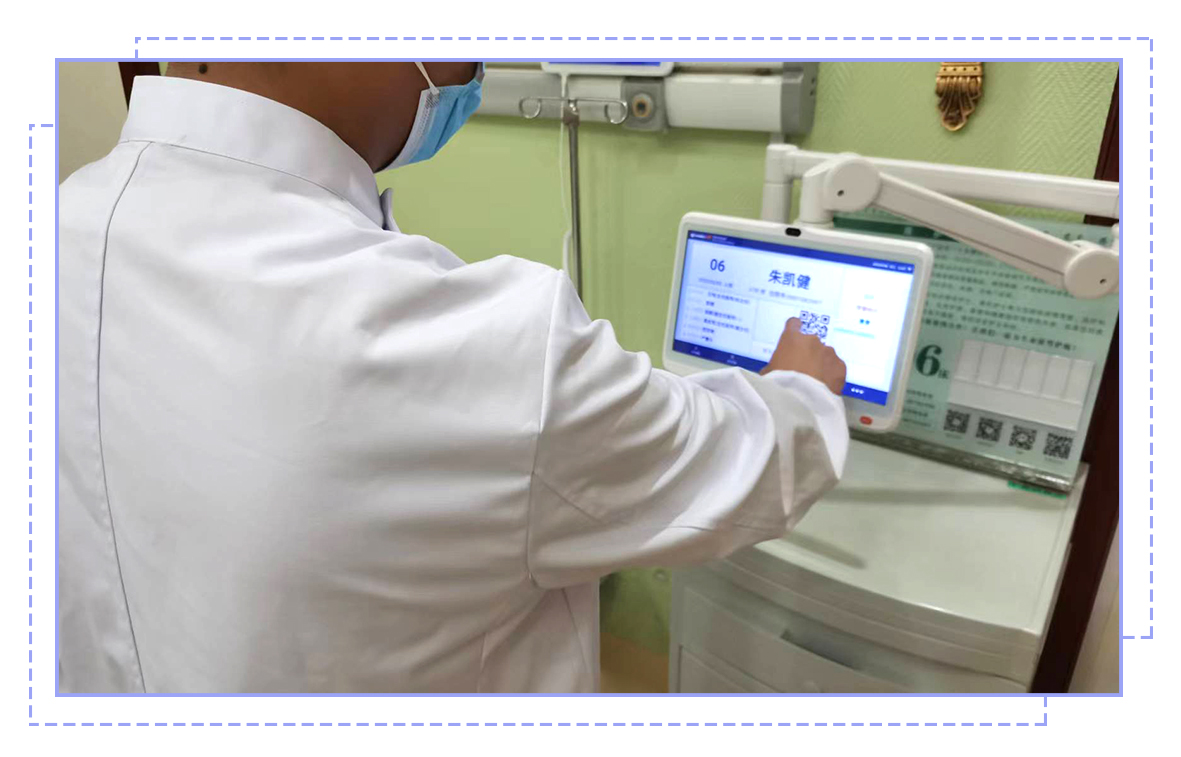患者床頭屏是一個(gè)電子化的床頭卡,它結(jié)合了傳統(tǒng)的床頭呼叫器,患者需要幫助時(shí)可一鍵呼叫,并且它還可以實(shí)時(shí)更新患者數(shù)據(jù)顯示,有了它護(hù)士每日可快速完成三查七對(duì)的護(hù)理工作。