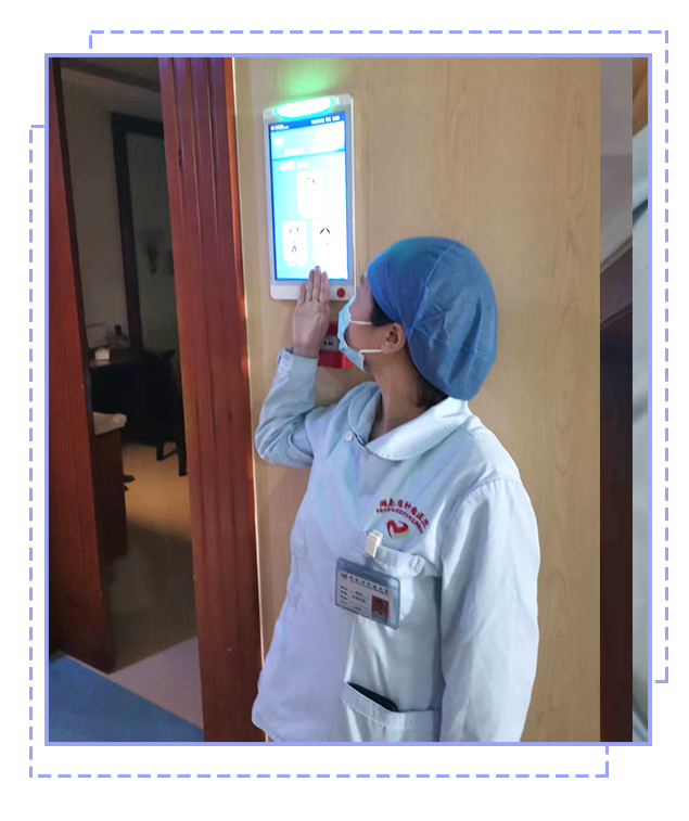 通過(guò)病房智能門(mén)口屏可了解患者的責(zé)任醫(yī)護(hù),并在患者發(fā)起呼叫時(shí)長(zhǎng)亮彩燈,提升護(hù)士響應(yīng)效率。